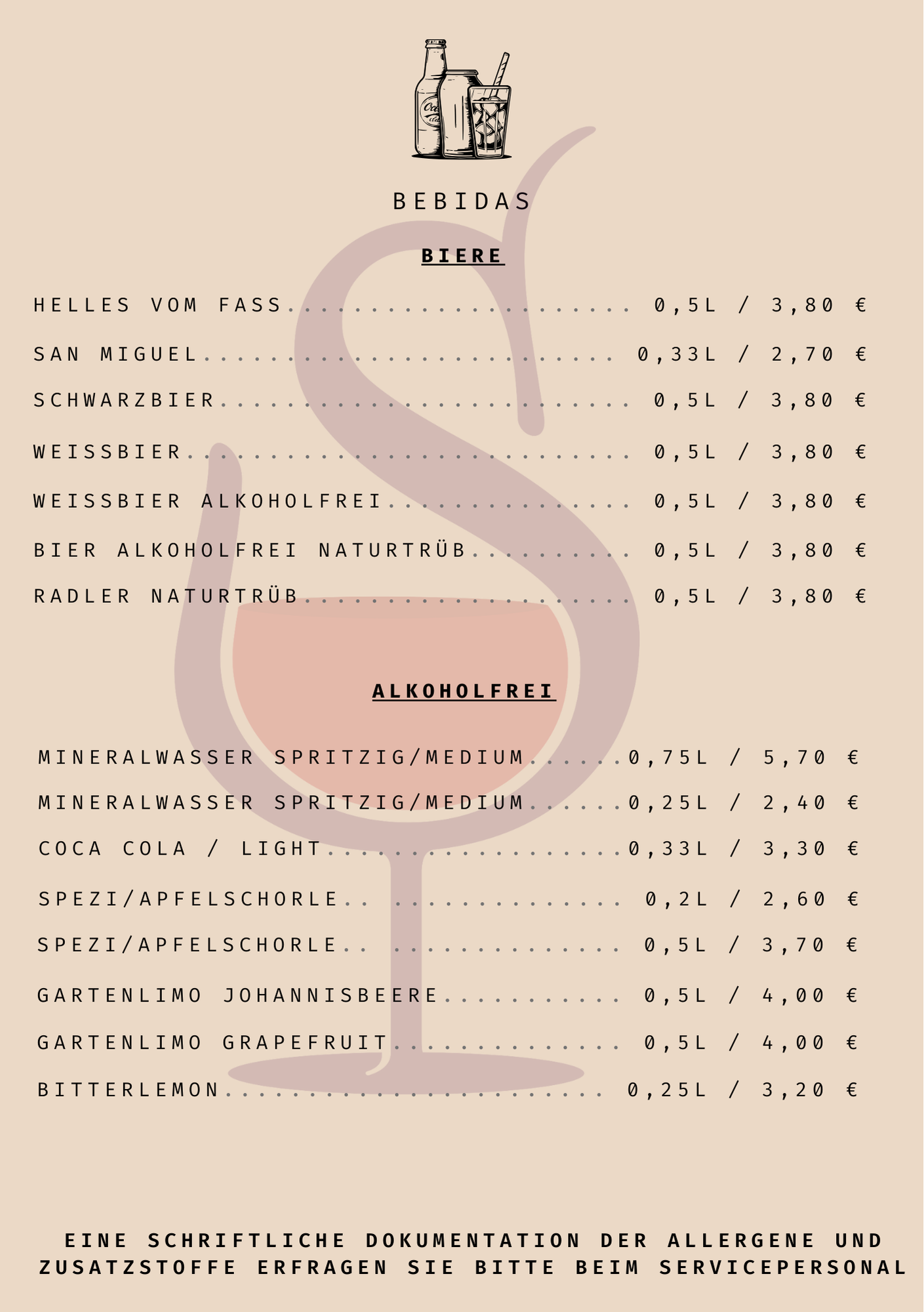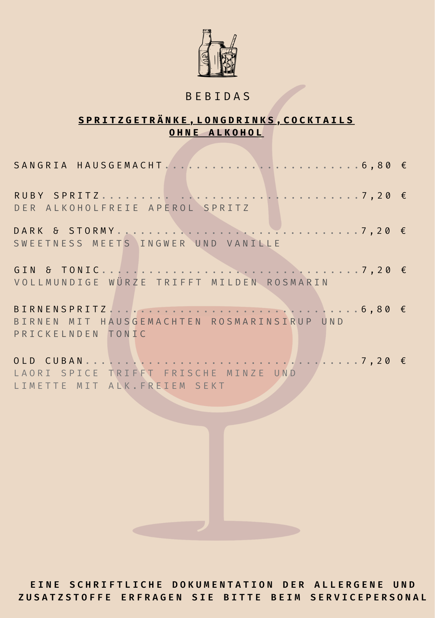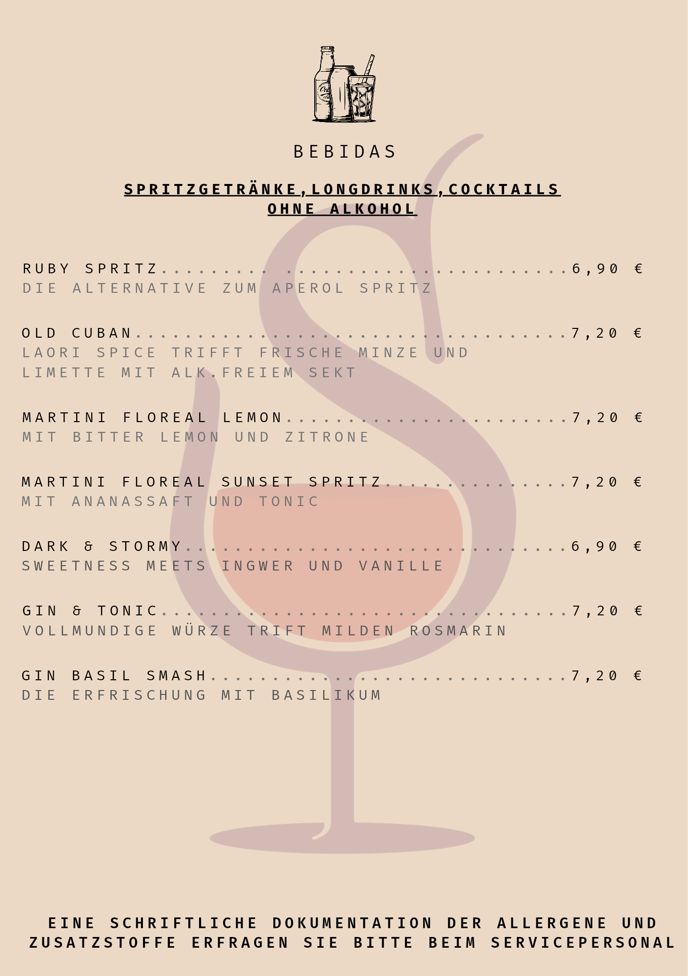 Bebidas (Teil der Getränkekarte) kommt vorbei und probiert euch durch!