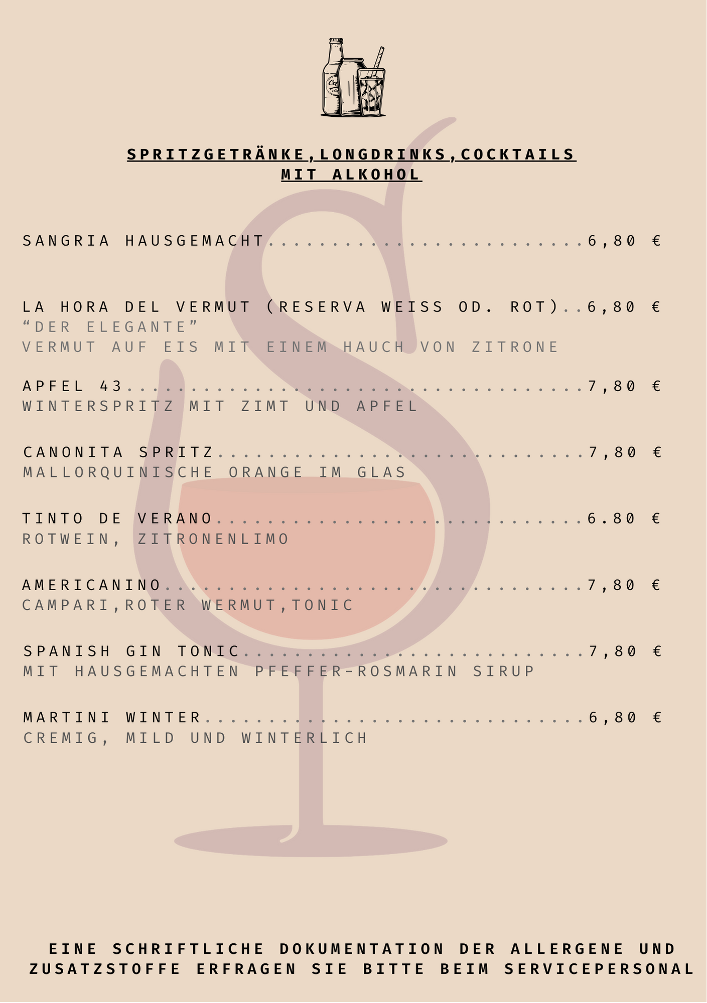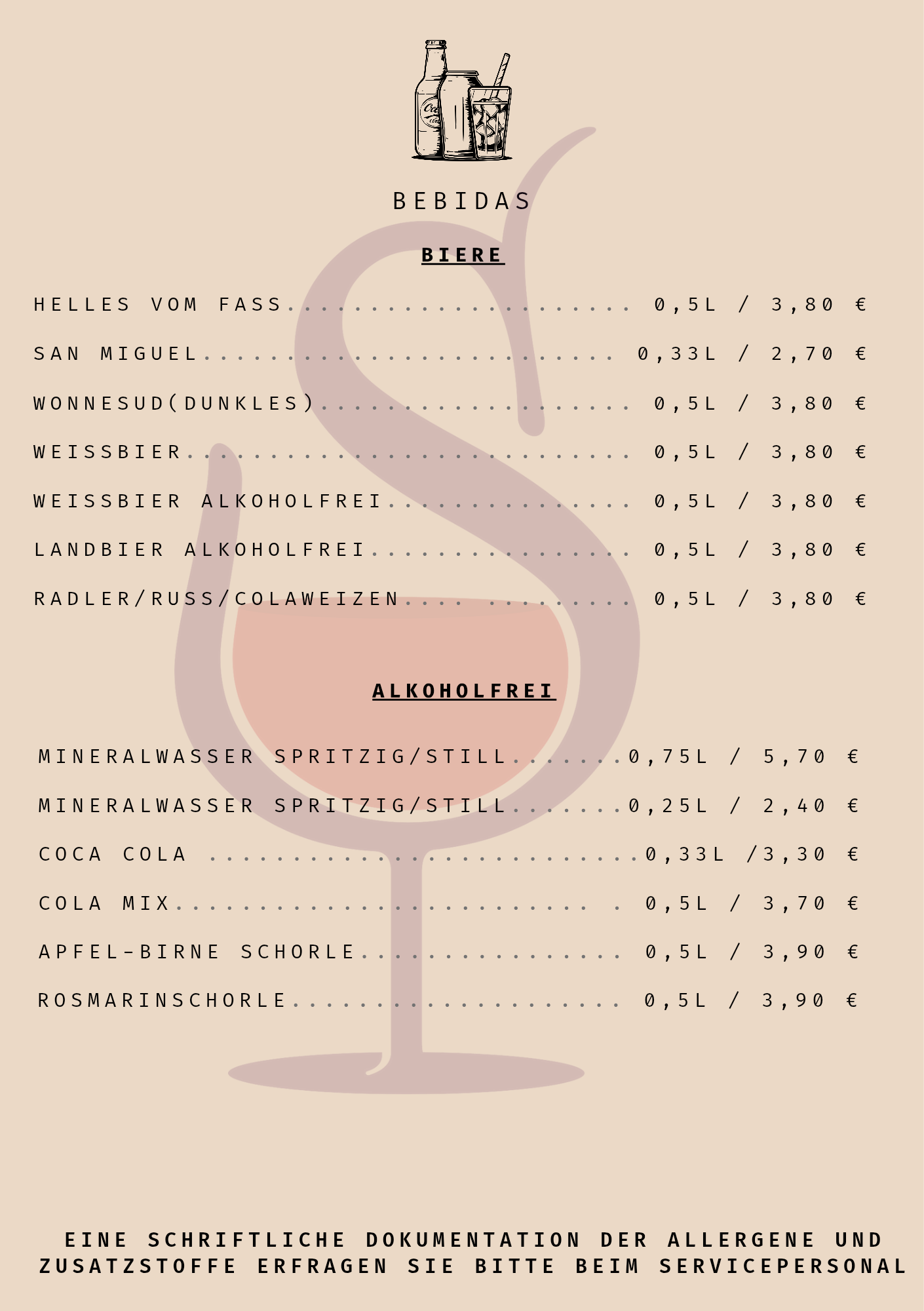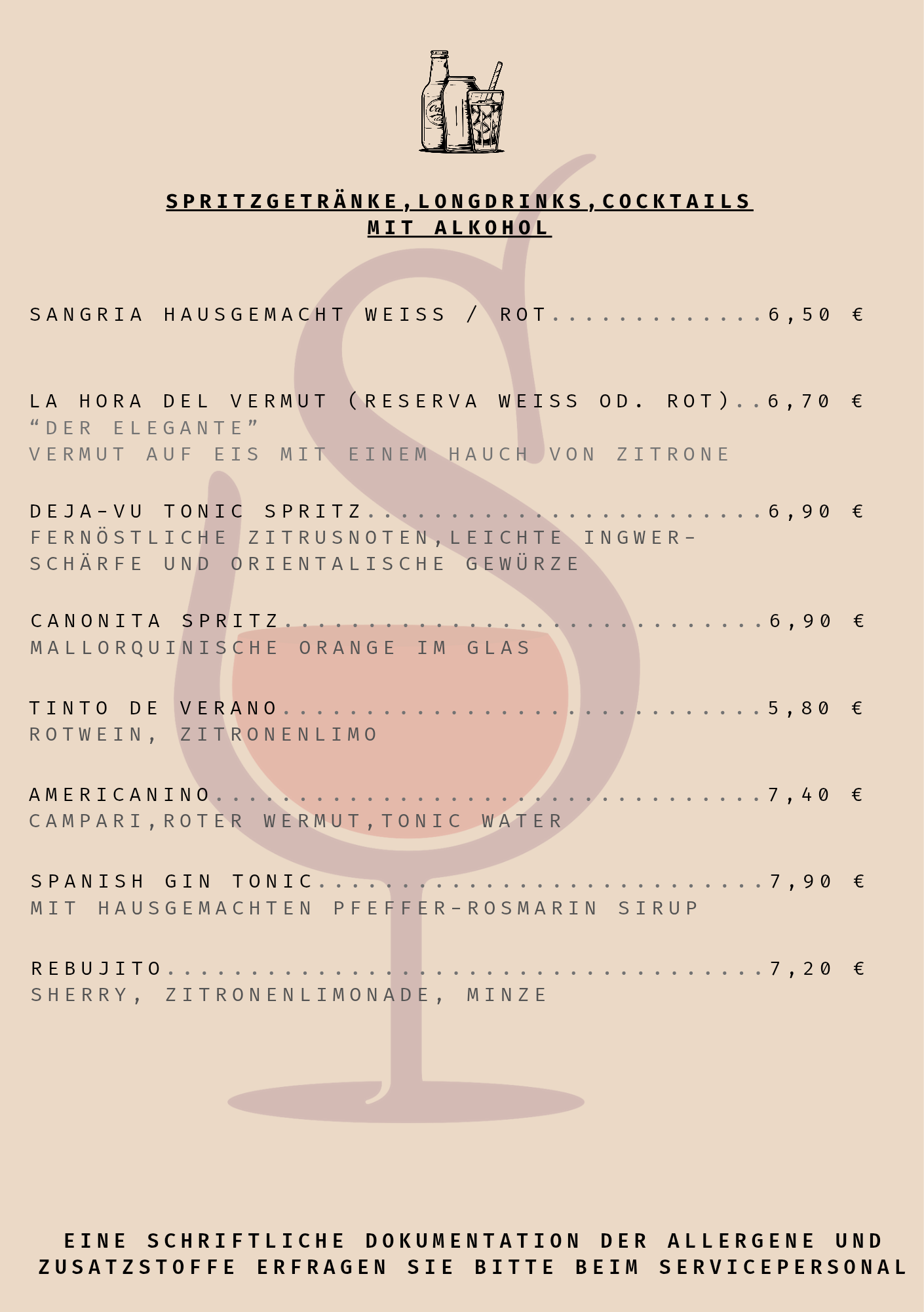 Bebidas (Teil der Getränkekarte) kommt vorbei und probiert euch durch!
